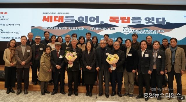 지난 10일 경기도서관에서 광복 80주년 특별기획전 '세대를 이어, 독립을 잇다'가 개막했다. 본격적인 전시에 앞서 열린 개막식에는 독립유공자 후손을 비롯해 경기도청 관계자, 정계 인사 등이 참석해 자리를 빛냈다.