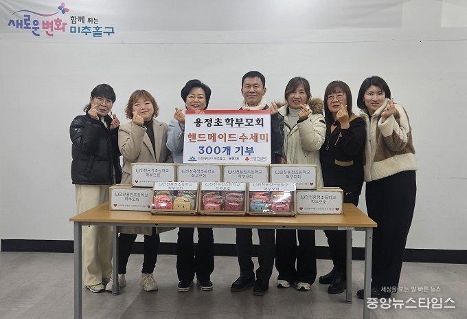 (중앙뉴스타임스 = 방재영 기자) 인천 미추홀구 용현3동(동장 신상일)은 12일 용정초등학교 학부모회(회장 최혜원)로부터 수제 수세미 300개를 전달받았다.