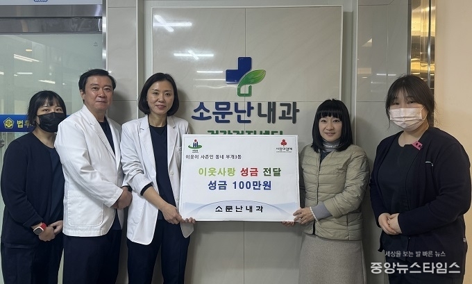 (중앙뉴스타임스 = 방재영 기자) 인천 부평구 부개3동은 12일 소문난 내과로부터 성금 100만원을 전달받았다.