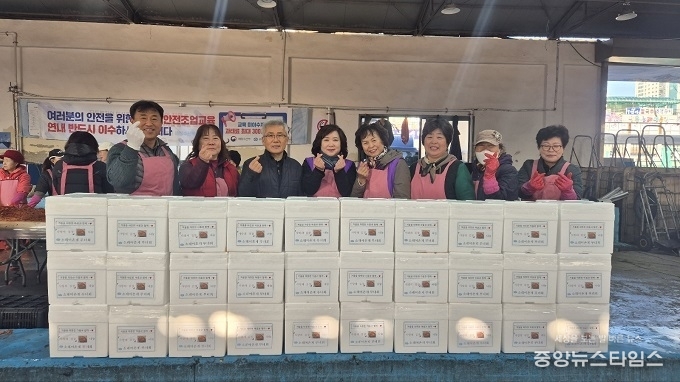 (중앙뉴스타임스 = 방재영 기자) 인천 남동구 논현1동 행정복지센터는 소래어촌계 부녀회(회장 박봉애)가 ‘사랑의 김장 담그기 행사’를 통해 직접 담근 김치 80상자(800kg)를 기탁했다고 15일 밝혔다.