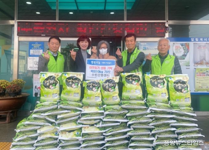 (중앙뉴스타임스 = 방재영 기자) 경기도 고양시에 있는 수빈간병센터가 지난 11일 평택시 청북읍 행정복지센터에 백미(10㎏) 70포를 기부했다.