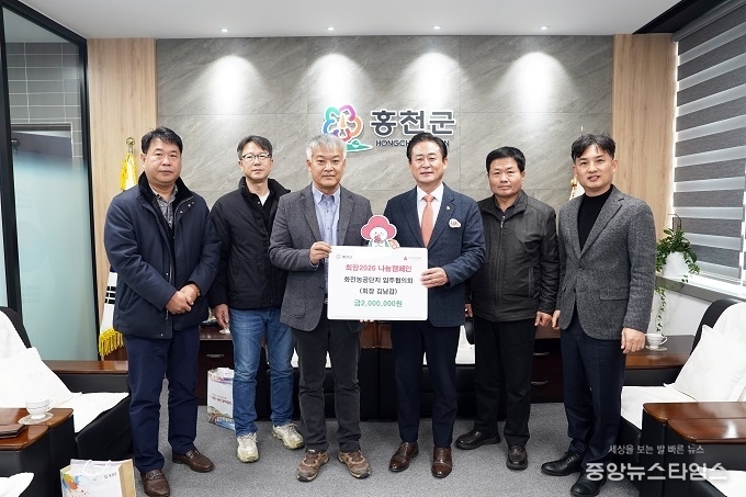 (중앙뉴스타임스 = 방재영 기자) 화전농공단지 입주협의회(대표 김남갑)와 ㈜이화전공(대표 정소자, 윤종엽), 농업회사법인 선일생약 주식회사(대표 강성원), 맑은들 주식회사(대표 김상덕), 주식회사 다원에프앤비(대표 정유석) 등 화전농공단지 입주기업 5개 사는 17일 홍천군청을 방문해 이웃돕기 성금 900만 원을 기탁했다.