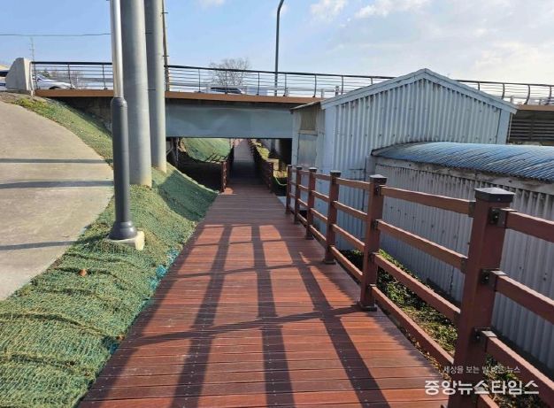 (중앙뉴스타임스 = 방재영 기자) 동해시는 국도7호선으로 인해 단절돼 있던 전천 제방길(북삼동 방향)을 하천제방과 전천교 하부공간을 활용해 보행자를 전용 데크로드 연결을 완료했다고 19일 밝혔다.