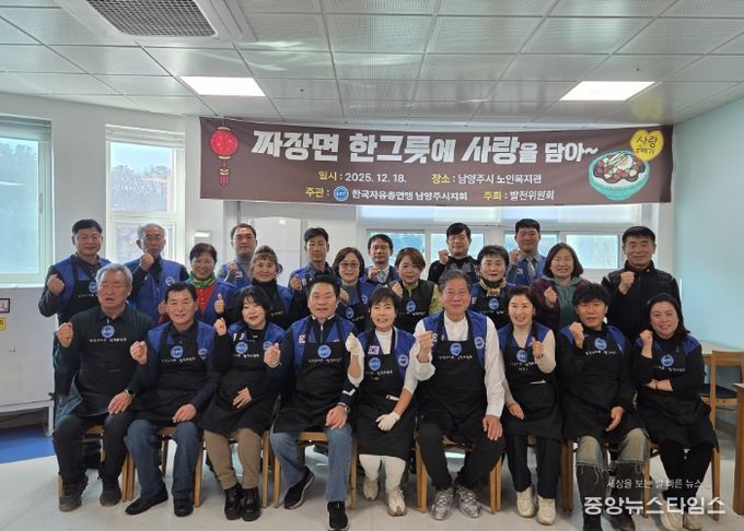 (중앙뉴스타임스 = 방재영 기자) 남양주시는 18일 한국자유총연맹 남양주시지회가 관내 노인복지관에서 지역 어르신 200여 명을 대상으로 짜장면 나눔 행사를 열었다고 밝혔다.