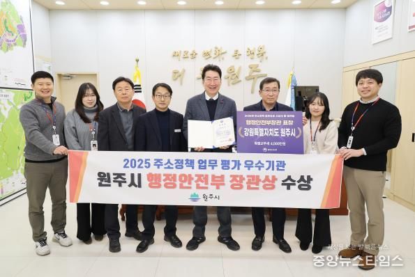 (중앙뉴스타임스 = 방재영 기자) 원주시는 최근 행정안전부가 주관한 ‘2025 주소정책 성과 공유 워크숍’에서 주소정책 업무 평가 우수 기관으로 선정돼, 행정안전부장관 표창을 수상하고 특별교부세 4천만 원을 확보했다.