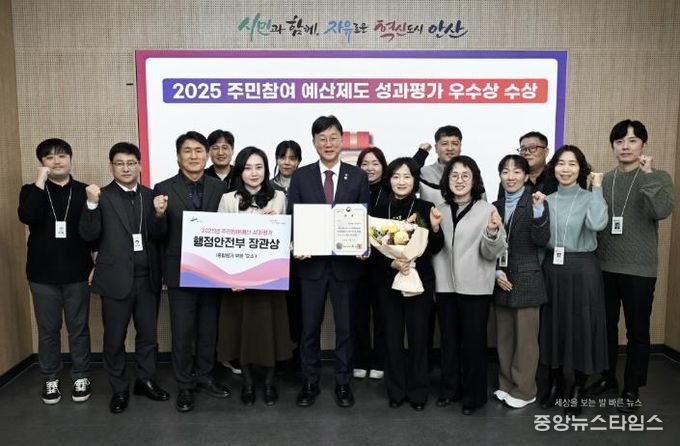 (중앙뉴스타임스 = 방재영 기자) 안산시는 행정안전부 주관 ‘2025년 주민참여예산 성과평가’에서 종합 부문 우수상을 수상, 주민참여예산 제도 운영 전반의 성과를 대외로부터 인정받았다고 23일 밝혔다.