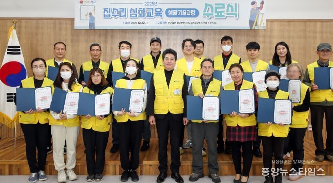 (중앙뉴스타임스 = 방재영 기자) 인천 중구는 지난 19일 영종2동 행정복지센터에서 ‘2025년 집수리 심화 교육 수료식’을 개최했다고 밝혔다.