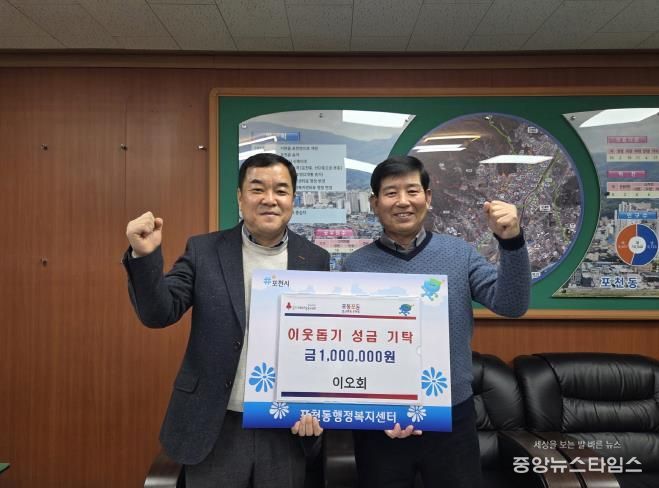 (중앙뉴스타임스 = 방재영 기자) 포천시 포천동 행정복지센터는 지난 22일 이오회가 포천동 내 어려운 이웃을 돕기 위해 성금 100만 원을 기탁했다고 밝혔다.