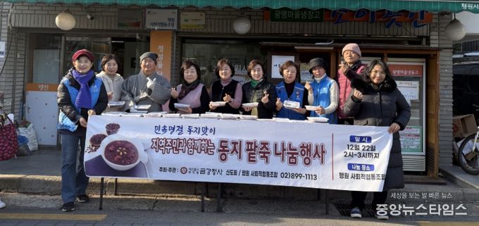 황용운 동장은 “이번 나눔행사를 위해 함께한 금강정사, 사회적협동조합 행원, 그리고 지역사회보장협의체 위원들에게 감사하다”며 “따뜻한 팥죽 한 그릇이 주민들에게 작은 위로가 됐길 바라며, 모두 건강하고 행복한 새해를 맞이하시길 기원한다”고 말했다.