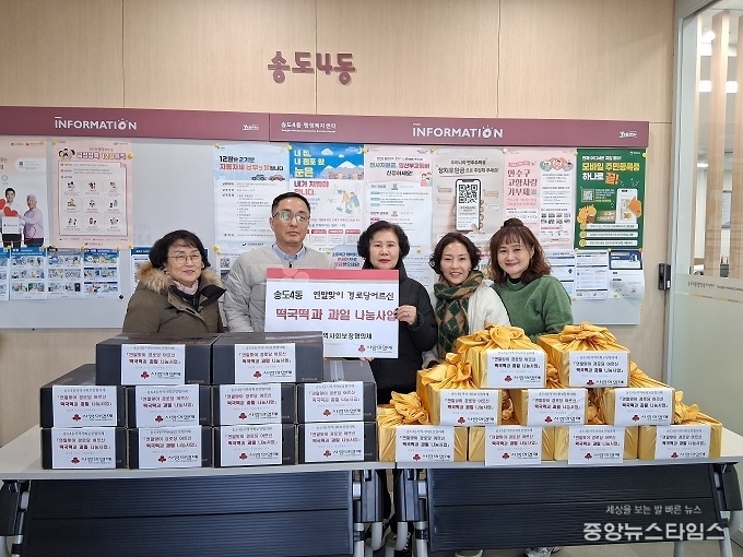 (중앙뉴스타임스 = 방재영 기자) 인천 연수구 송도4동 지역사회보장협의체(위원장 박일희·양만상)는 지난 22일 연말을 맞아 ‘경로당 어르신 떡국떡과 과일 나눔사업’을 진행했다.