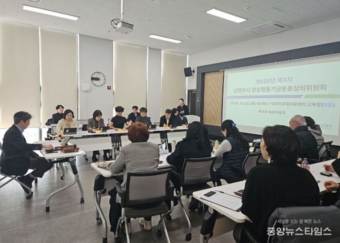 (중앙뉴스타임스 = 방재영 기자) 남양주시는 22일 남양주사회적경제지원센터에서 ‘2025년 제3차 남양주시 양성평등기금운용심의위원회 및 성과공유회’를 개최하고, 올해 추진한 양성평등기금 지원사업의 성과를 공유하며 2026년도 사업방향을 논의했다고 밝혔다.