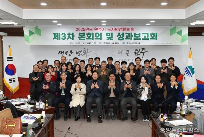 (중앙뉴스타임스 = 방재영 기자) 원주시 노사민정협의회는 23일 오후 5시 시청 10층 대회의실에서 제3차 본회의 및 성과보고회를 개최했다.