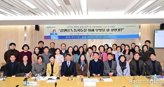 (중앙뉴스타임스 = 방재영 기자) 경기도는 23일 경기도 북부청사 상황실에서 ‘2025년 경기도 감정노동자 등 산업재해 예방’ 사업 성과 공유 및 토론회를 열고 한 해 동안 추진해 온 감정노동자 보호 사업에 대한 현장의 목소리를 청취했다.