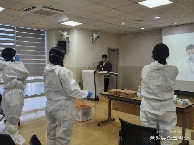 (중앙뉴스타임스 = 방재영 기자) 동두천시보건소는 지난 22일 직원들을 대상으로 감염병 발생 상황에 대비한 개인보호구(Level D) 착·탈의 실습 교육을 실시했다.