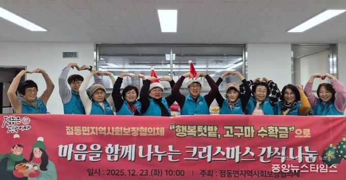 (중앙뉴스타임스 = 방재영 기자) 여주시 점동면지역사회보장협의체는 23일 행복텃밭 고구마 수익금으로 마련한 크리스마스 간식을 점동면 관내 27개마을 경로당에 전달하며 따뜻한 연말 나눔을 실천했다.