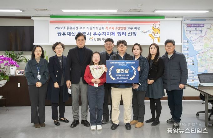 (중앙뉴스타임스 = 방재영 기자) 인천 서구는 지난 22일 행정안전부 주관으로 정부서울청사에서 열린 ‘2025년 공유재산 우수 지방자치단체’ 시상식에서 공유재산 총조사 부문에서 뛰어난 성과를 거두며 우수 지자체로 선정되어 특별교부세 2천만 원을 교부받을 예정이다.
