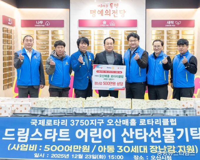 이번 기탁은 오산시 매홀로타리클럽(회장 김창수)이 크리스마스를 맞아 드림스타트 아동들을 위해 마련한 나눔 활동으로, 500만 원 상당의 장난감 꾸러미가 전달됐다. 기탁된 물품은 드림스타트 사례관리 아동 30명에게 직접 전달돼 아이들에게 특별한 성탄 선물이 됐다.
