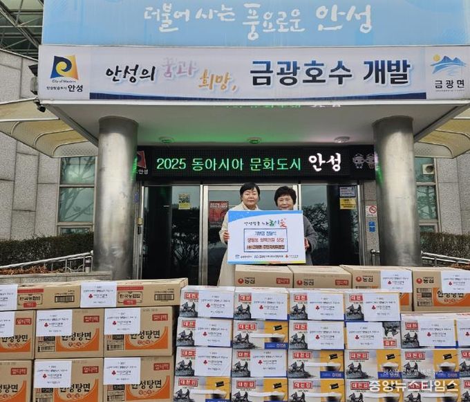 (중앙뉴스타임스 = 방재영 기자) 안성시는 12월 23일, 금광면 주민자치위원회 양영순 위원장이 겨울철 취약계층 가구의 따뜻한 겨울나기를 돕기 위해 라면, 김 등 생필품 100만원 상당을 금광면 행정복지센터에 기탁했다고 밝혔다.