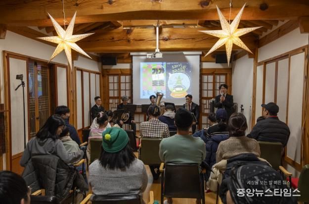 한옥숙박체험관 마당과 한옥11동에서는 캐럴 등 공연이 열려 겨울의 추위를 따뜻하게 채웠다. 20일에는 지역에서 활동하는 ‘모담어린이국악합창단’, 지역 내 아마추어 합주단 ‘포디움 윈드오케스트라’, 전문공연단체‘The울림’의 앙상블 무대가 열렸고, 21일에는 보듬우리협동조합의 클라리넷 독주가 열려 발달장애인과 비장애인이 음악으로 하나 되며 연말의 감동을 전했다.
