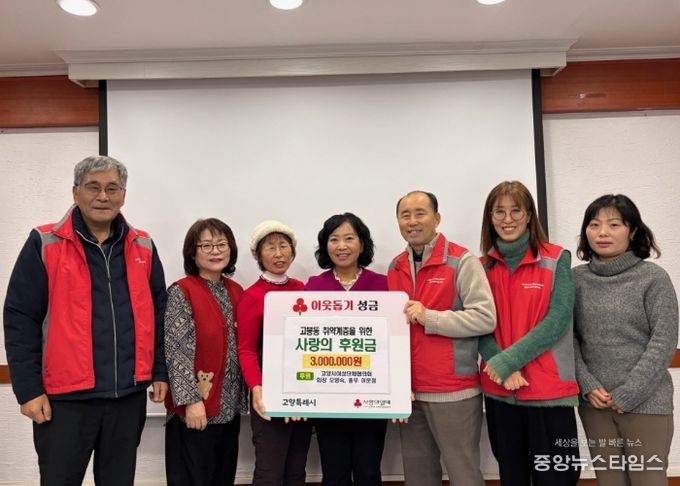 (중앙뉴스타임스 = 방재영 기자) 고양특례시 일산동구 고봉동은 지난 23일, 고양시여성단체협의회 오영숙 회장과 이문정 총무가 고봉동 취약계층을 위해 300만 원을 기탁했다고 밝혔다.