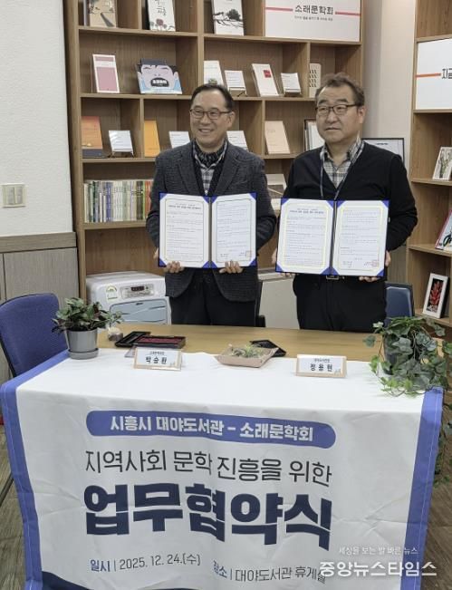 (중앙뉴스타임스 = 방재영 기자) 시흥시 대야도서관은 지역 문학단체인 소래문학회와 지난 24일 대야도서관 휴게실에서 지역 문학 진흥 및 독서문화 확산을 위한 업무협약을 체결했다.