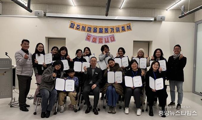 (중앙뉴스타임스 = 방재영 기자) 파주시는 지난 22일 금촌어울림센터에서 마을 곳곳에서 주민 소통과 협력을 이끌어낼 전문 인력인 ‘제1기 마을활동가’위촉식을 개최했다고 밝혔다.