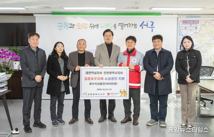 (중앙뉴스타임스 = 방재영 기자) 인천 서구는 지난 24일 대한적십자사 인천광역시지사(회장 조의영)로부터 온누리상품권(800만 원 상당)을 전달받았다.