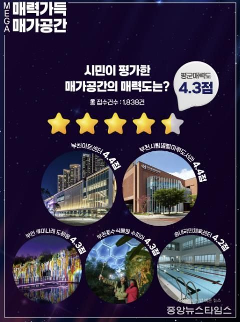 (중앙뉴스타임스 = 방재영 기자) 부천시는 시민이 직접 참여한 ‘MEGA(매가) 공간’ 매력도 조사 결과를 발표했다. 이번 공모는 공간에 대한 시민의 체감도와 이용 경험을 파악하고, 이를 바탕으로 향후 공간 운영과 정책 방향을 설정하기 위해 실시됐다.