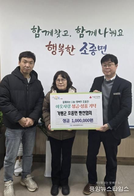 (중앙뉴스타임스 = 방재영 기자) 가평군 조종면 펜션협회는 지난 24일 조종면 행정복지센터를 방문해 이웃돕기 성금 100만원을 기탁하며 온기를 더했다.