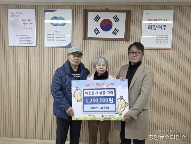 (중앙뉴스타임스 = 방재영 기자) 여주시 금사면 생활개선회 최종희 회장이 배우자와 함께 지난 24일 여주시 금사면행정복지센터를 방문하여 이웃돕기 성금 120만원을 기탁했다.