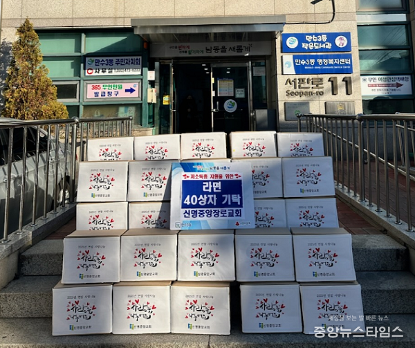 (중앙뉴스타임스 = 방재영 기자) 인천 남동구 만수3동 행정복지센터는 신명중앙교회(담임목사 천갑민)로부터 어려운 이웃을 돕기 위한 라면 40상자를 기탁받았다고 29일 밝혔다.