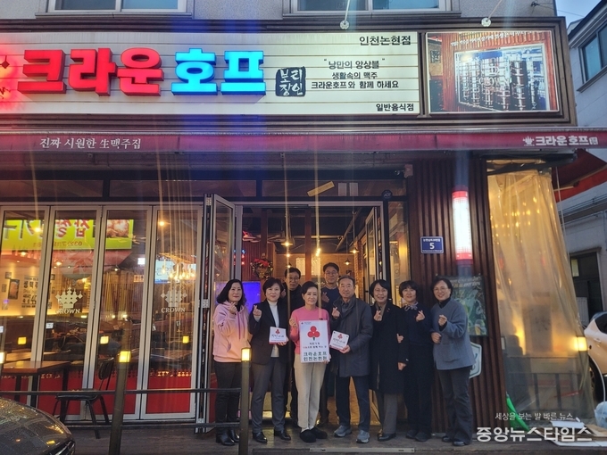 (중앙뉴스타임스 = 방재영 기자) 인천 남동구 논현2동 행정복지센터는 지역사회보장협의체 위원들과 함께 크라운호프 인천논현점(대표 홍현진)을 방문해 착한가게 현판을 전달했다고 30일 밝혔다.