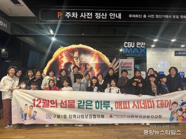(중앙뉴스타임스 = 방재영 기자) 인천 남동구 구월1동 행정복지센터는 취약계층 아동들이 즐겁고 행복한 연말을 보낼 수 있도록 '12월의 선물 같은 하루, 해피 시네마 데이' 사업을 진행했다고 30일 밝혔다.