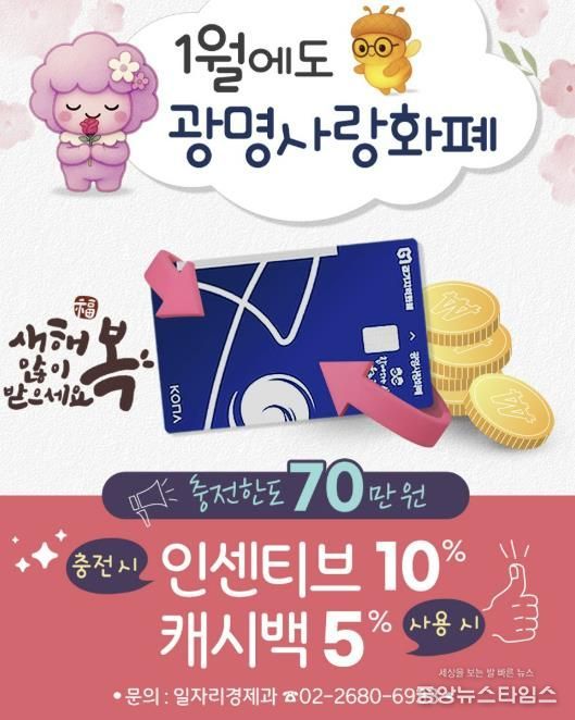 시는 2026년 1월 광명사랑화폐 인센티브 10%와 캐시백 5% 혜택을 지원한다고 31일 밝혔다.