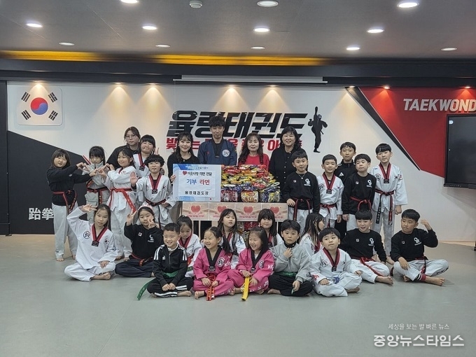 율랑태권도장은 태권도 수련생들에게 주변의 어려운 이웃을 돕는 봉사와 나눔의 의미를 알려주고자 사랑의 라면 기부 행사를 했다.