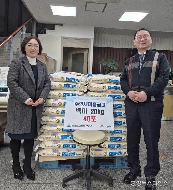 (중앙뉴스타임스 = 방재영 기자) 인천 미추홀구 주안6동(동장 윤도희)은 지난 30일 주안새마을금고(이사장 이규하)로부터 겨울 온정을 담은 백미 20kg 40포를 전달받았다.