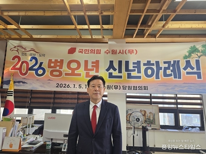 (중앙뉴스타임스 = 방재영 기자) 수원시 무지역 국민의힘 박재순 당협위원장이 5일 열린 신년회에서 “다가오는 2026년 지방선거는 무능과 독선, 야당 탄압 정치에 대한 국민적 심판의 장이 될 것”이라며 강도 높은 대정부 비판과 함께 지역 현안 해결에 대한 의지를 밝혔다.