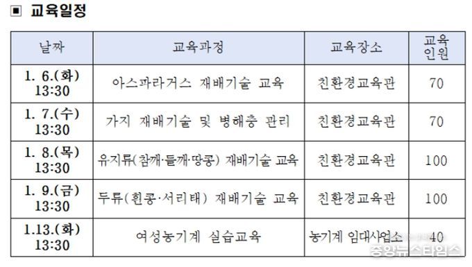 한편, 2026년 새해농업인실용교육은 지난해 12월 읍·면·동을별 벼농사 교육을 시작으로, 1월 밭작물분야 전문교육까지 단계적으로 운영되고 있다.