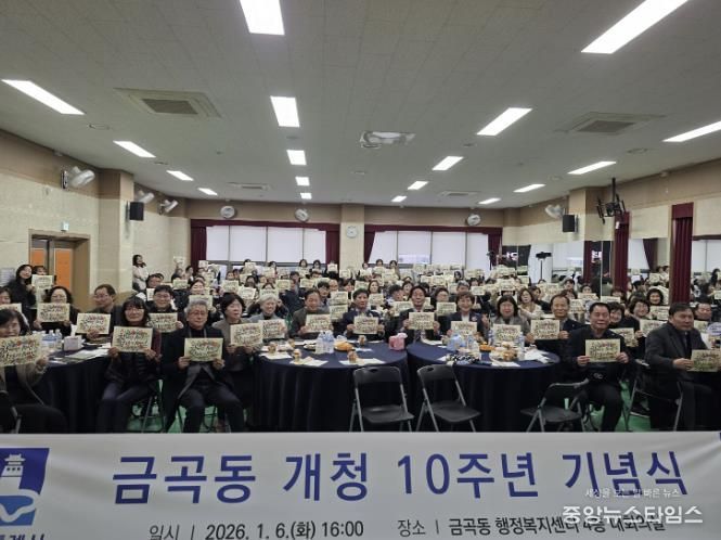 (중앙뉴스타임스 = 방재영 기자) 2026년 개청 10주년을 맞은 수원시 권선구 금곡동은 지난 6일 지역구 의원과 주민 등 100여 명이 참석한 가운데 주민자치회 및 통장협의회와 함께 10주년 기념행사를 개최했다.
