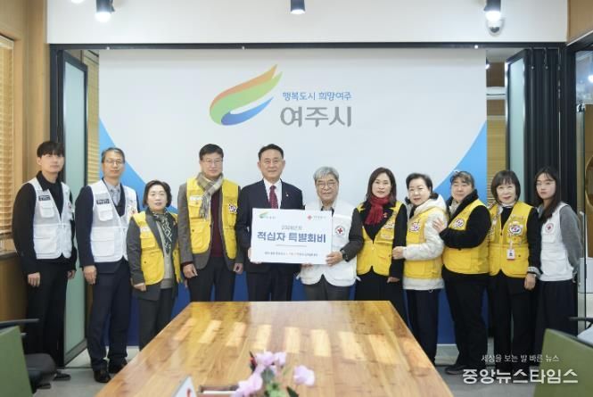 (중앙뉴스타임스 = 방재영 기자) 여주시는 6일 시청 시장실에서 이재정 대한적십자사 경기도지사 회장과 대한적십자사봉사회 여주시지구협의회 회장 등이 참석한 가운데 2026년 적십자 특별회비를 전달했다.