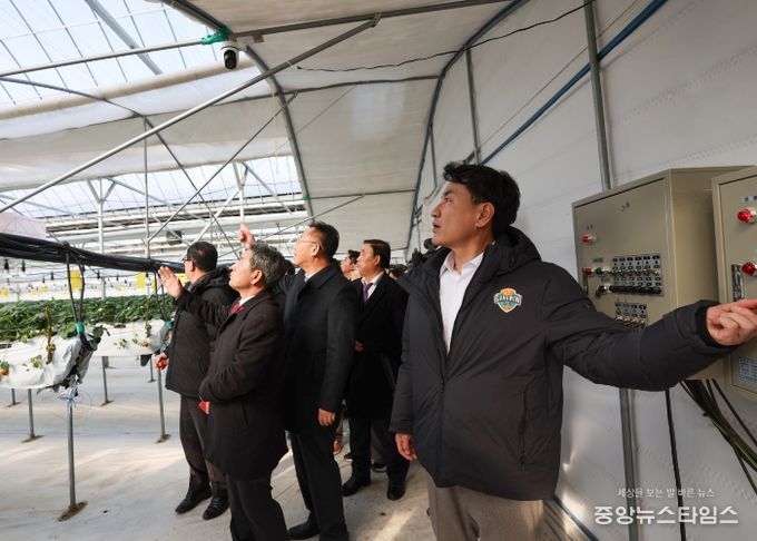 이날 현장에는 김진태 강원특별자치도지사를 비롯해 한기호 국회의원(춘천철원화천양구을), 딸기 등 시설원예 재배 농업인들이 함께했으며, 시설 보온 상태와 작물 생육 상황 등을 점검했다.