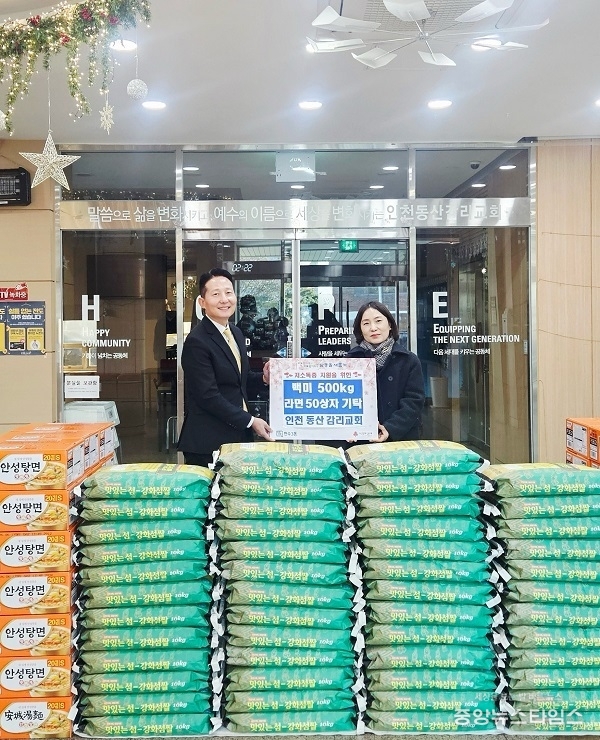 (중앙뉴스타임스 = 방재영 기자) 인천 남동구 만수3동 행정복지센터는 인천동산감리교회(담임목사 조혁)로부터 어려운 이웃을 돕기 위한 백미 500kg과 라면 50상자를 기탁받았다고 8일 밝혔다.