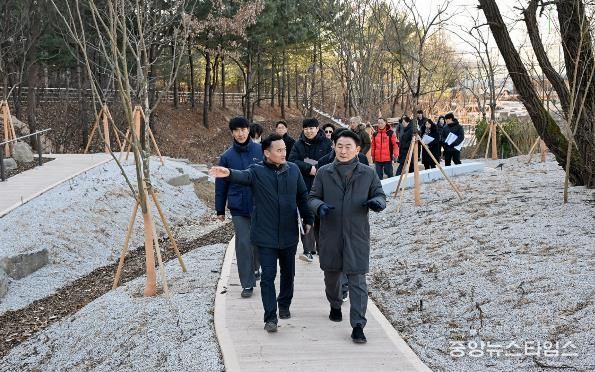 (중앙뉴스타임스 = 방재영 기자) 의정부시는 2026년 병오년 새해를 맞아 8일 녹지 인프라 확충을 위한 주요 사업 대상지를 현장 점검했다. 점검 대상지는 ▲장암동 실외정원 ▲용현산업단지 완충녹지 산책로 및 가로숲길 조성 사업지 ▲민락동 감성쉼터 등이다. 이번 점검은 도심 속 쉼터와 실외정원 확충, 안전한 보행환경 조성, 산림 명소 발굴 등 녹지 인프라 조성 사업의 추진 현황을 점검하고, 시민들이 일상에서 녹지 공간을 보다 쉽게 이용할 수 있도록 추진 중인 ‘도시숲 프로젝트’의 사업 방향과 현장 여건을 확인하기 위해 진행됐다.