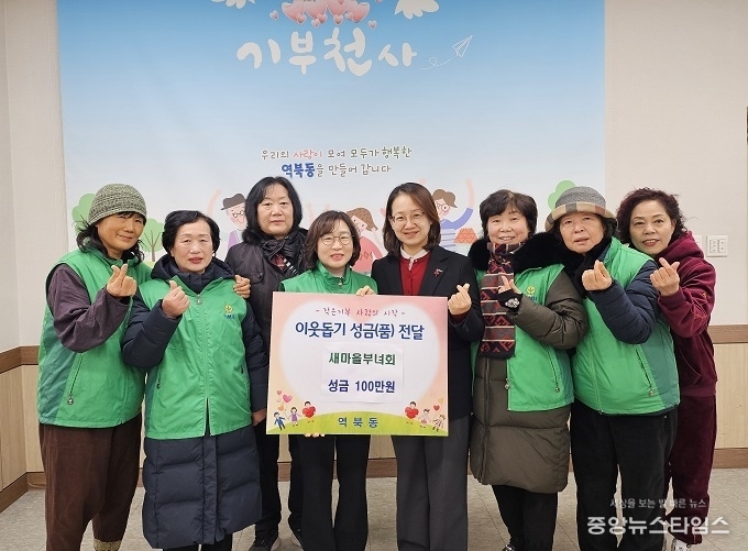역북동 새마을부녀회(회장 박순자)는 지난 7일 성금 100만 원을 역북동에 기탁하며 사랑의 열차 이어달리기 운동에 동참했다. 박 회장은 “작은 정성이지만 지역의 어려운 이웃들에게 도움이 되길 바란다”며 “앞으로도 주민들과 함께 나눔과 봉사를 실천하며 따뜻한 지역사회를 만드는 데 앞장서겠다“고 했다.