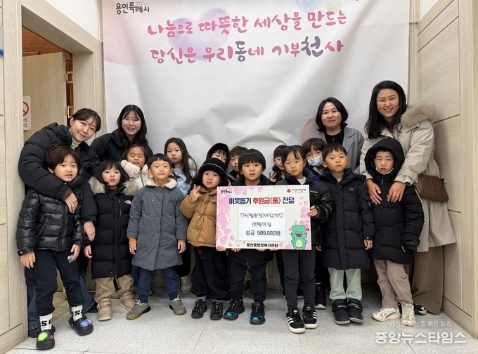 시립동천자이2차 어린이집(원장 박정훈)은 지난 6일 어려운 이웃을 위해 써달라며 동천동에 성금 50만 9000원을 기부했다. 성금은 원생들이 용돈을 저축해 모은 것과 교직원의 자발적으로 기부로 마련됐다. 박 원장은 “어린이들이 이웃과 온정을 나누는 기쁨을 몸소 배울 수 있는 계기가 됐다”며 “조금이나마 도움이 필요한 분들에게 소중하게 쓰일 수 있길 바란다”고 했다.