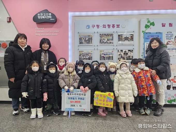 (중앙뉴스타임스 = 방재영 기자) 인천 남동구 논현고잔동 행정복지센터는 에코누리 어린이집(원장 김미량)으로부터 바자회 수익금 50만 1,980원을 기탁받았다고 14일 전했다.