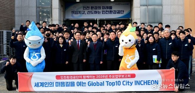 (중앙뉴스타임스 = 방재영 기자) 인천광역시는 15일 인천환경공단을 방문해 2026년도 주요업무와 현안을 공유하고, 현장 근무 직원들의 의견을 청취하고 격려하는 등 소통의 시간을 가졌다고 밝혔다.