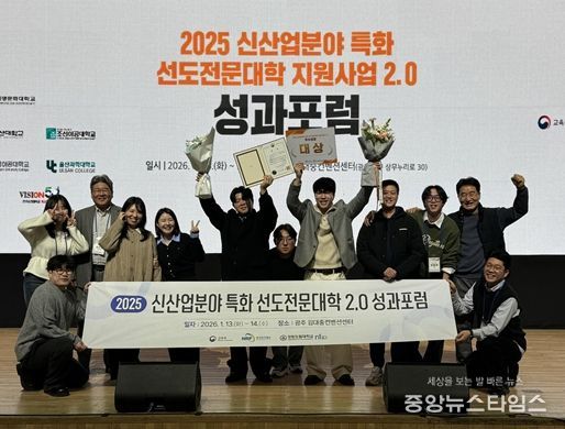(중앙뉴스타임스 = 방재영 기자) 강원도립대학교는 ‘신산업분야 특화 선도전문대학 지원사업 2.0 성과포럼’ 우수성과 전시 시상식에서 대학 부문 우수성과 ‘대상’ 수상과 함께, 소속 학생인 한재민 학생이 개인 부문 사업 성과 대상(교육부 장관상)을 수상하여 대학·개인 2개 부문을 석권했다.