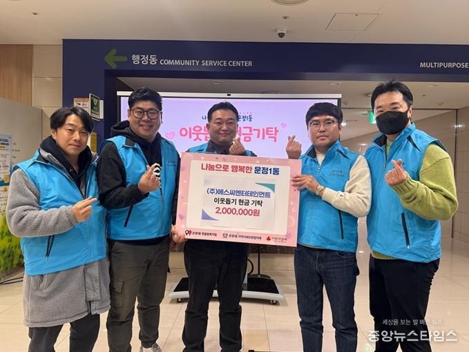 이번 기탁은 지난 2024년 성금 전달에 이어 다시 한번 이루어진 것으로, 일회성 지원에 그치지 않고 지역사회에 꾸준히 관심을 기울여 온 ㈜에스씨엔터테인먼트의 진심 어린 나눔 철학이 담겨 있다.