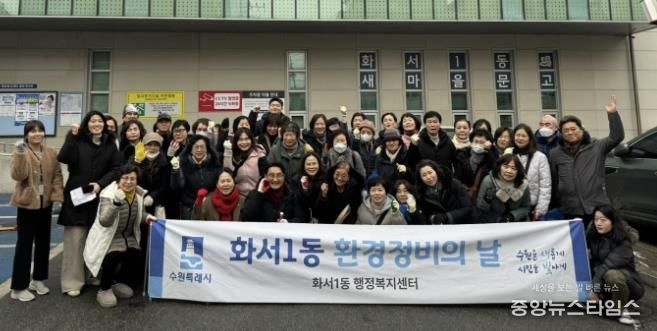 (중앙뉴스타임스 = 방재영 기자) 수원시 팔달구 화서1동은 지난 15일 통장협의회 등 단체원 및 주민들과 함께 2026년 설맞이 관내 환경정비를 실시했다고 밝혔다.